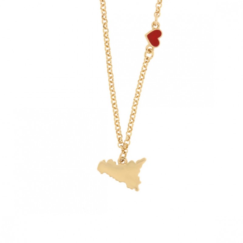 By Simon - I Love Sicily - Etna Collection. Metal necklace with Sicily and little heart, enamel, gold plated. Length 40 + 5 cm.