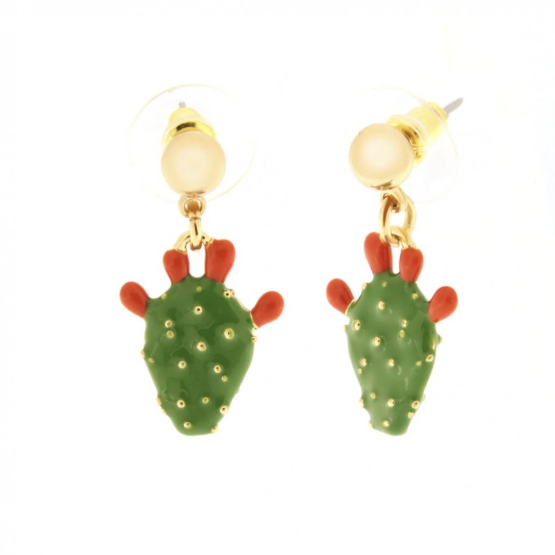 Metal earrings with little prickly pear pendant, enamels, gold plated.