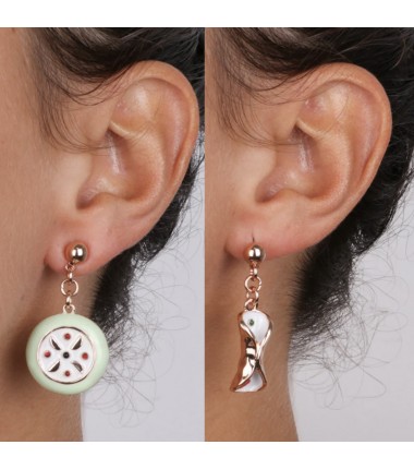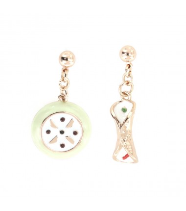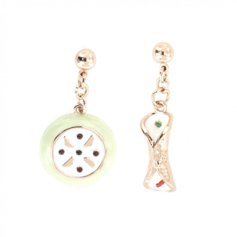 By Simon - I Love Sicily - Collezione Etna. Orecchini in metallo con cannolo e cassata pendenti, smalti, placcato rosè. Lunghezza 3,5 cm.
